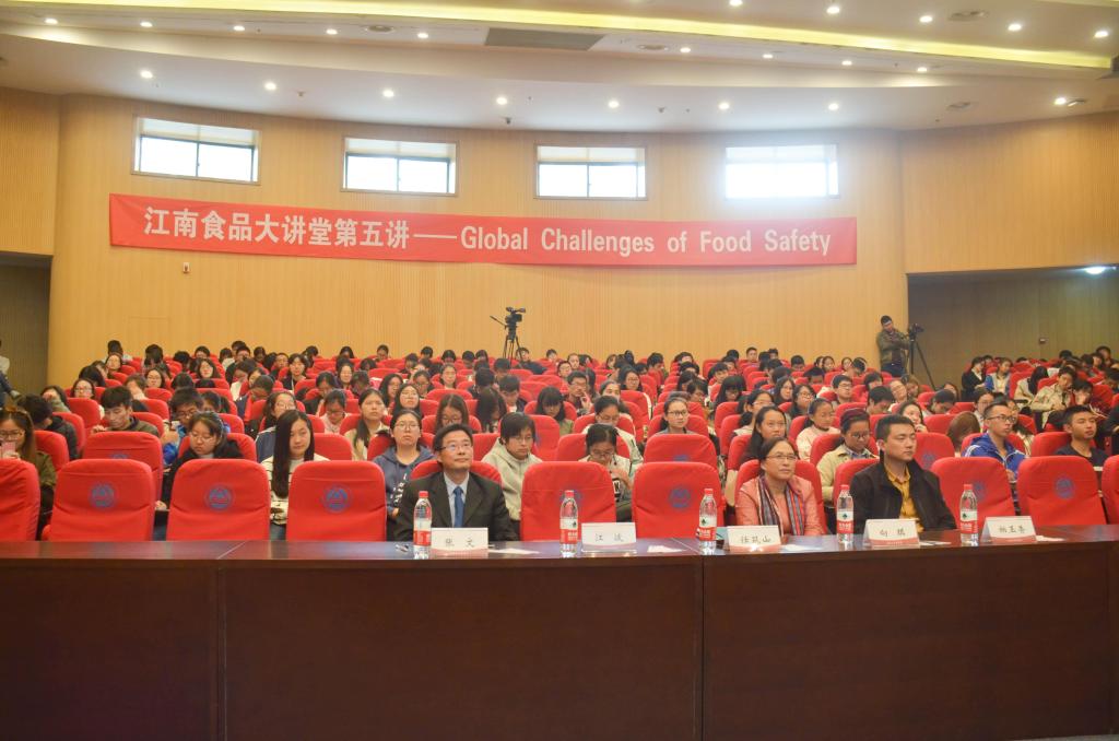 11月8号下午,江南食品大讲堂第五讲——Global Challenges of Food Safety在江南学术报告厅举行。美国前农业部副部长、上海交通大学陆伯勋食品安全研究中心咨询委员会主席任筑山教授应邀主讲。食品科学国家重点学科带头人、国际交流与合作处处长江波、院党委书记向琪、院党委副书记、副院长张文出席,300余名学子到场聆听。本期江南食品大讲堂由院党委副书记张文主持。