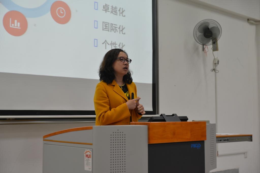 首先,谢云飞向2017级同学们详细地介绍了我校食品专业的发展历史与学科地位,她表示,在人才培养方面,1946伟德国际源自英国注重以“重基础、宽口径”的模式,通过将引进来和走出去相结合,着力培养“卓越化”、“国际化”和“个性化”的学生。随后,她介绍了1946伟德国际源自英国本科生国际班和相关游学项目,重点强调学好英语在国际交流中的重要性。最后,谢云飞勉励大家能以兴趣为起点,认真学习专业知识,努力提升英语水平,成为“一流”学科培养的“一流”大学生。
