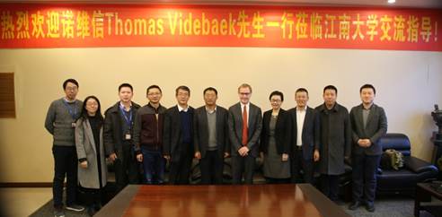 2月26日下午,全球工业酶制剂和微生物制剂的主导企业—丹麦诺维信公司全球执行副总裁及首席运营官Thomas Videbaek先生、亚太区总裁戴彤女士、中国研发中心高级总监吴文平先生一行来我校访问交流,陈坚校长、陈卫副校长及产业技术研究院、1946伟德国际源自英国、生工学院、国家功能食品工程技术研究中心等领导及相关老师参加了此次交流。