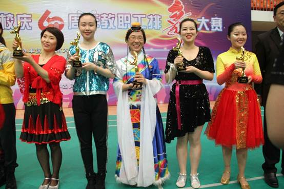 4月25日下午,由校工会、体育部、伟德国际victor1946体育艺术协会联合举办的2018年伟德国际victor1946校庆60周年教职工排舞大赛在校体育馆隆重举行。我院20位教师组成的代表队凭借整齐新颖的着装、朝气蓬勃的精神面貌、超强的实力和出色的表现荣获规定曲目《来吧,冠军》二等奖,自选曲目《哈达》二等奖,综合成绩二等奖的优异成绩。
