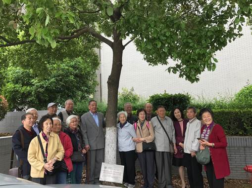 吃完午饭,校友们迫不及待地前往五年前认植树的地点,大家纷纷合影拍照,给树浇浇水,擦擦认领牌,仿佛看着自己的孩子一样长大,这颗树代替他们见证着母校的成长。