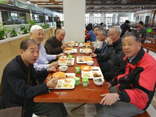食堂吃一顿学生餐,体验一把当年的学生时光,这道校友回母校必做题受到了校友们的赞不绝口,平均年龄80岁的老校友们胃口大开,还亲切地询问正在吃饭的在校学生一顿饭要花多少钱?当年的青葱岁月恍若眼前,校友们纷纷感慨时代的变迁,不变的是学校对学生的关爱和关怀。