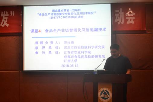 启动会由孙远明教授主持,陈卫副校长、付卫平处长在启动会上分别致辞。随后,进行了“食品生产经营质量安全智能化应用技术研究”项目汇报和各课题汇报。在项目和各课题汇报结束后,与会专家和领导针对项目和各课题,从项目整体到如何具体落实实施方案等,提出了很多建设性的建议和意见。项目组根据专家意见和建议,进一步讨论和细化了各项目和课题的实施方案和管理举措,以确保按期保质的完成项目和课题任务书中各项考核指标。最后,由孙远明教授作总结,“食品安全关键技术研发”重点研发计划项目“食品生产经营质量安全智能化应用技术研究”启动会圆满结束。