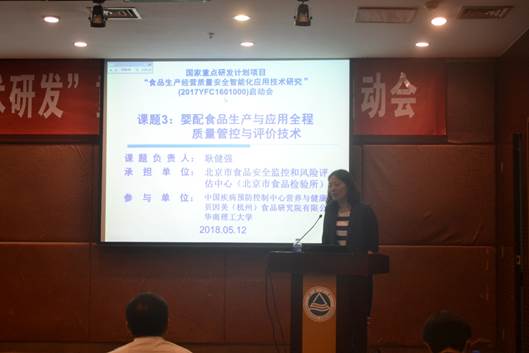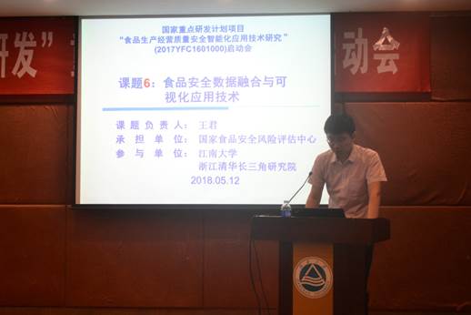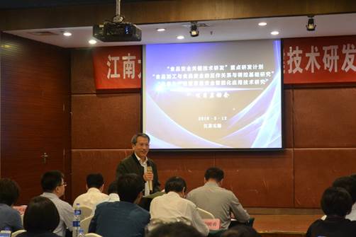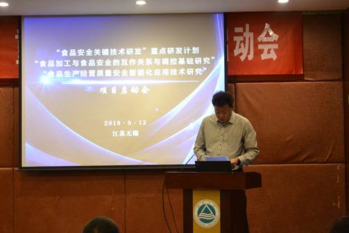 由我校承担,金征宇教授主持的“食品安全关键技术研发”重点研发计划项目“食品生产经营质量安全智能化应用技术研究”(2017YFC1601000)启动会,于2018年5月12日,在伟德国际victor1946长广溪宾馆召开。伟德国际victor1946校长陈坚、副校长陈卫、中国生物技术发展中心处长付卫平、中国生物技术发展中心项目专员董华,项目特邀专家孙远明、叶兴乾、胡秋辉、邹小波、陈颖,葛宇等6位教授以及来自12家项目参与单位的近40人参加了启动会。