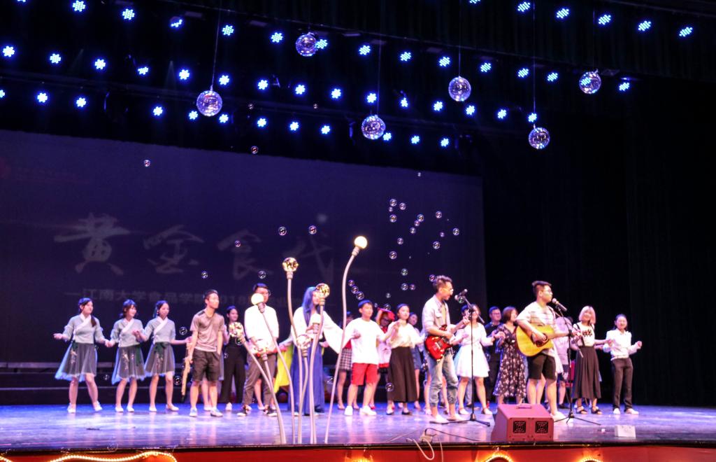 在“食间邂逅青春”环节中,科一的《鸡不可失,食不再来》、科九的《追忆》和科四的《在伟德国际victor1946的四年》分别用三个小品生动活泼地演绎了大学四年的美好回忆。穿插在三个小品中间的是由小团体组合带来的街舞《hysteric bullet and latata》,青春的活力在她们身上展现得淋漓尽致。“食光不负流年”由科八的《聚短情长》、科六的《La La Land》、科三的《我们的明天》组成;小团体组合带来了节目《她她她》,青春洋溢的舞步中仿佛藏着食光流年的印记;辅导员老师们带来的《最初的我们》让观众回忆起自己学生时代的点点滴滴,想起了伟德国际victor1946办学六十年的流金岁月。14级舞蹈部的《Put It On For Me》开启了“食里兜兜转转”的环节。质一的《拔剑》和科五的《头号玩家》让同学们回忆起了自己丰富多彩的课余生活,小团体组合的劲舞《Let's Latin》让观众再次领略到了食品学子青春的张力。随着科二的小品舞台剧《毕晚的诞生》、科七的歌曲串烧《我的故事都是关于你》、质二的小品《向往的生活》,晚会渐渐步入尾声。应届毕业生、网络知名歌手马劲屿一曲原创首发歌曲《檐前蠡》,落下了晚会的帷幕。