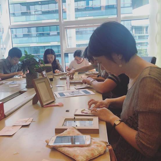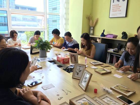随后,老师们体验了干花相框制作。一朵朵零散的干花在老师们灵巧的手下变成了一幅幅精美的作品,老师们体味着满满的成就感,并与自己的作品合影留念。短短的一个多小时的放松,体验美好生活,让老师们度过了一个温馨的教师节。