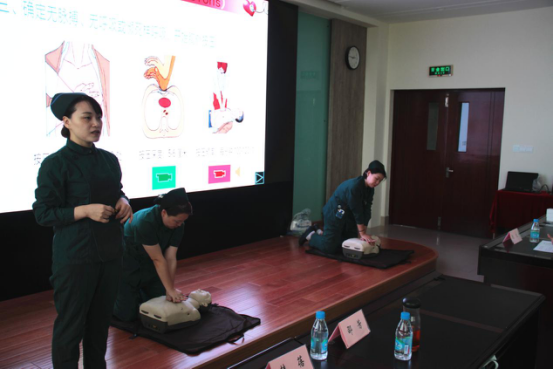护师们模拟心肺复苏场景