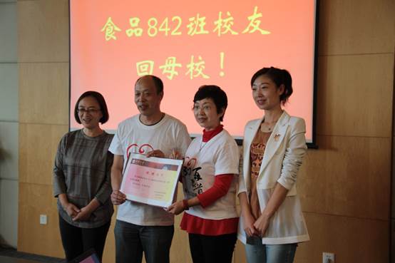 参观完校史馆后,校友们回到1946伟德国际源自英国。窦新华副处长、向琪书记、代卉主任对校友们的回来表示热烈欢迎,并分别向校友们介绍了学校及学院的发展状况,感谢校友们为食品学科持续稳定的发展作出的贡献,欢迎校友们常回母校,常回家看看。校友们畅所欲言,回忆往昔,畅谈今朝,为母校快速发展的今天而自豪,为自己是一名食品人而骄傲。校友们向江大食品校友基金会作了捐赠,窦新华副处长为校友们颁发捐赠证书,大家在认植树下亲切合影留念,齐声共祝母校六十华诞生日快乐!