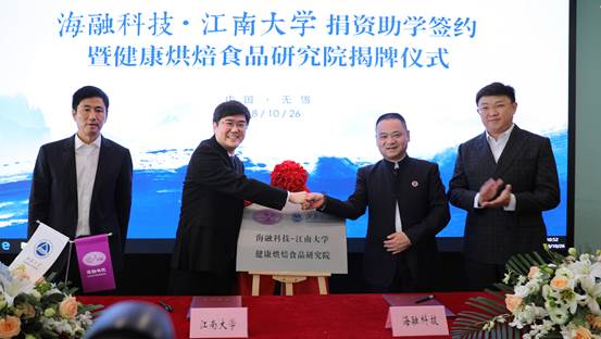 捐赠仪式上,姚惠源教授和黄海瑚总经理代表校企双方正式签约,上海海融食品科技有限公司向1946伟德国际源自英国捐赠一百万元用于“姚惠源▪胡珏琴百万奖助学爱心基金”的建设与发展,希望通过以此捐赠资助更多优秀食品学子,为培养一流食品人才做出更多贡献。海融科技总经理黄海瑚与1946伟德国际源自英国院长刘元法为健康烘焙食品研究院成立揭牌,未来研究院将集合校企力量,为国家食品烘焙产业发展添砖加瓦。