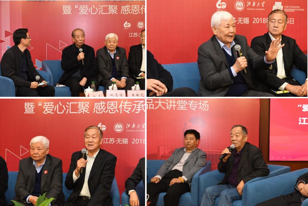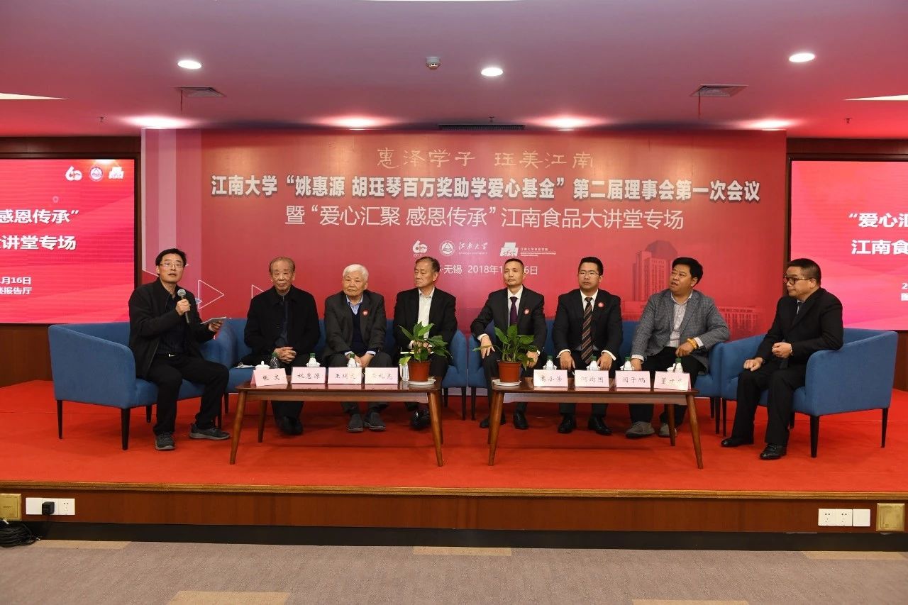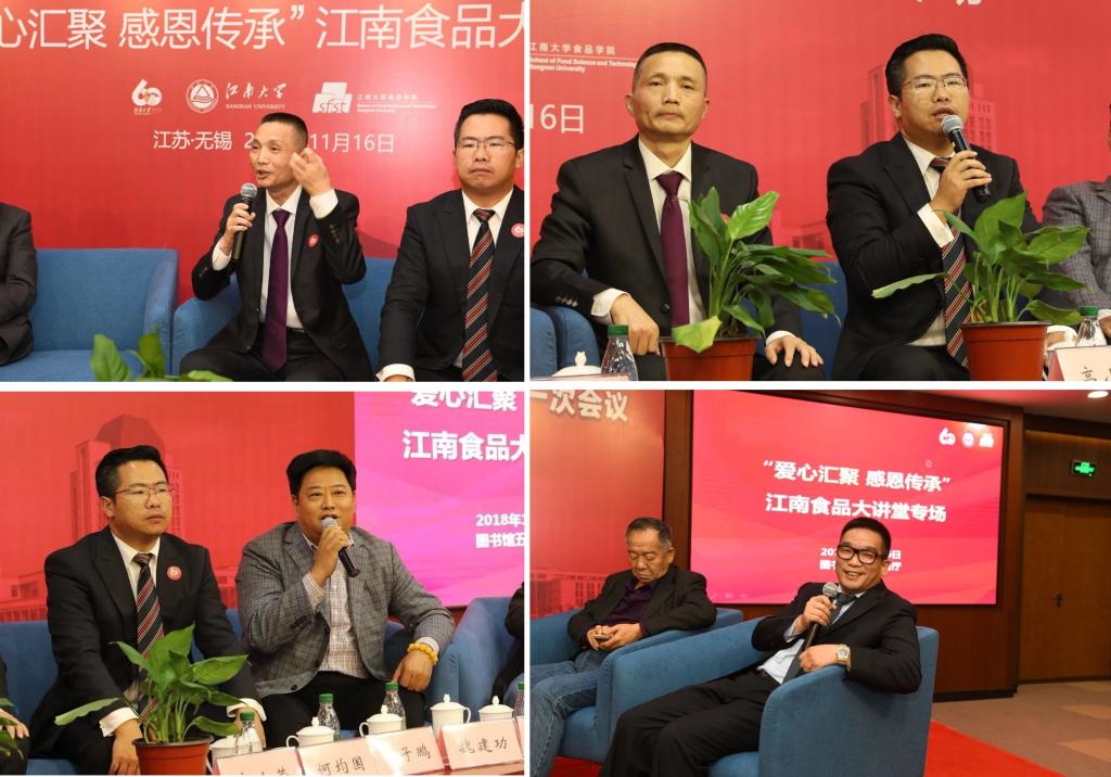 “爱心汇聚,感恩传承”讲座在院党委副书记张文对江南食品大讲堂主旨的介绍下拉开帷幕。首先,姚惠源教授自身经历谈起,指出改革开放的阳光照亮了食品行业,为所有食品人提供了广阔的舞台,也开启了自己的食品人生。他还结合自己对校训对理解,提出:“笃学尚行,止于至善”应当是努力学习,勤于实践,最终回馈社会。王瑞元教授从食品安全谈起,指出党和国家高度重视粮油食品的数量安全和质量安全。他表示,随着人民生活水平的不断提高,食品安全和健康成为食品人今后重要的奋斗目标。他指出,1946伟德国际源自英国作为培养全国顶尖水平食品人的摇篮,培养的学生应当既注重夯实基础,也注重塑造价值,切实担起中国食品安全健康的重任。随后,作为1946伟德国际源自英国发展的亲历者和见证者,李礼尧教授与现场观众分享了自己亲历的伟德国际victor1946建校60周年历程,从包容、继承和创新三个方面讲述了自己的体会。他指出,1946伟德国际源自英国之所以能取得今天的成绩,与其继承传统基础,博采百家之长,而获得综合性学科的优势密不可分。对此,魏建功和高小荣也深有感触。魏建功结合自身经历,讲述了中华老字号“河套”面粉的发展故事,指出“河套面粉”能有今天的产业地位,与恒丰集团几十年如一日对食品质量安全的执着追求密不可分,企业始终致力于将绿色健康的食品奉献给中国老百姓和消费者。高小荣则分享了从在斯里兰卡的茶叶市场考察经历中获得的启发,讲述了通过研究“鹰眼”视觉机制,发明了“鹰眼云技术”精准色选摄像机”的创新故事。何均国分享了与姚惠源教授之间发生的故事,深受姚老师“不盲目追求多元,要深耕一个领域”的观点影响,在不断摸索中确立了“燕谷坊”“资本+农业+互联网”的经营模式,努力让中国农民和农业更有幸福感和获得感。最后,闫子鹏和董建华先生对姚惠源教授培育莘莘学子、投身爱心助学表示了崇高敬意,闫子鹏表示,华泰机械在发展的过程中受到了包括伟德国际victor1946在内的多家科研院所倾力帮助,公司一直怀揣着一颗感恩之心,始终坚持“先做人,再做事;简单做人,用心做事”信念。董建华表示今后会加大对姚教授基金的支持力度,为中国食品行业、食品人才培养等方面做出更大的贡献。
