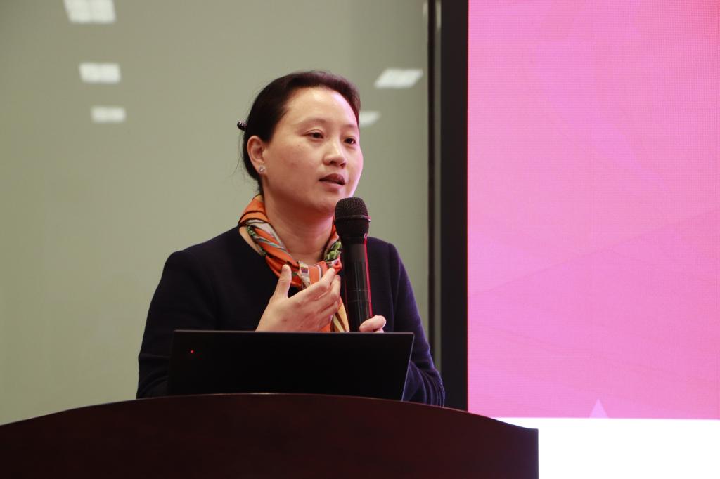 洪雁教授做总结发言,她鼓励在座同学抓住企业与学校共建的良好平台,珍惜机会,主动探索,勇于创新,积极参加丰富多彩的科创竞赛,充实自己大学生活。