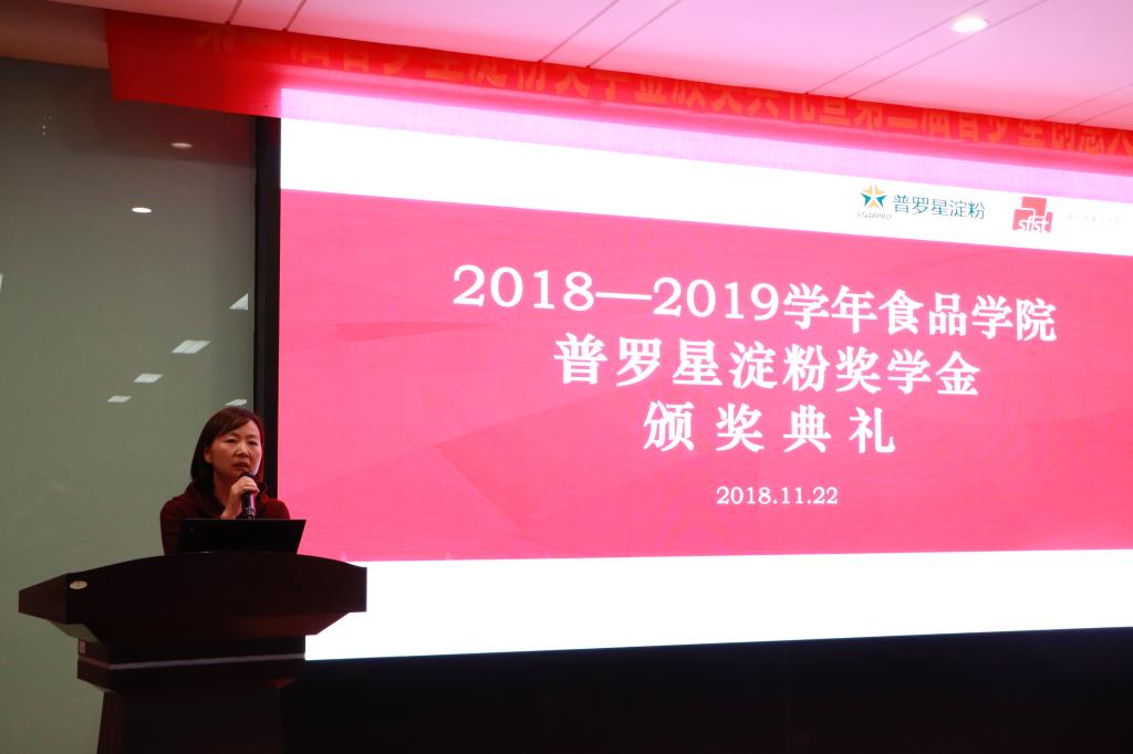 11月22日,第二届普罗星淀粉奖学金颁奖典礼暨第三届普罗星淀粉创意大赛宣讲会在食品楼D912成功举行。杭州普罗星淀粉有限公司研发处长王小芬女士、应用研发科长曾令军先生、1946伟德国际源自英国党委副书记、副院长张文老师、1946伟德国际源自英国洪雁教授、辅导员刘鑫老师出席会议,150余名学生参加了宣讲会。