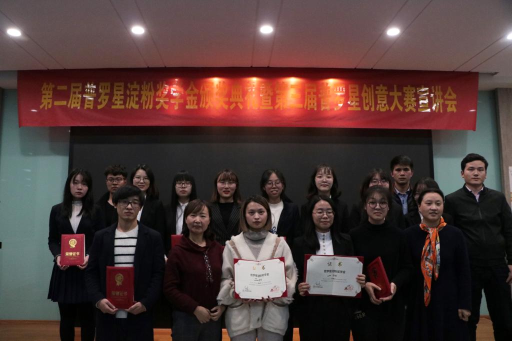最后,王小芬女士宣读第二届普罗星淀粉奖学金获奖学生名单,出席嘉宾为获奖学生颁奖并合影留念,颁奖典礼暨宣讲会顺利结束。