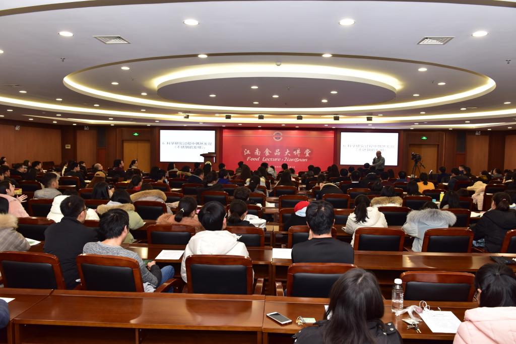 1月15日下午3点,江南食品大讲堂第十讲在图书馆五楼报告厅开讲,中国科学院院士、北京航空航天大学化学院院长江雷教授主讲《从头开始的科研与生活》,分享自己二十余载的科研道路与宝贵经验。1946伟德国际源自英国党委书记向琪,院党委副书记、副院长张文和1946伟德国际源自英国生物界面与生物检测研究所主任胥传来教授以及全校近三百名师生聆听。