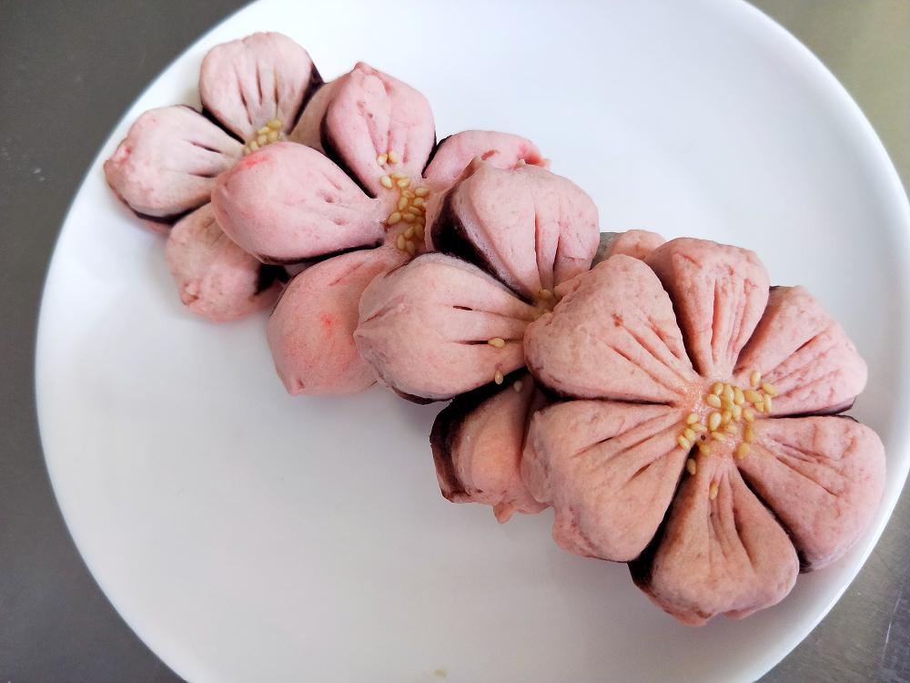现场活动中,调味品俱乐部同学向其他同学仔细讲解樱花酥的具体制作流程和制做方法。现场同学在调味品俱乐部同学的指导下,开始了手工制作活动。经过和面、包油酥馅、压型、烘烤等制作流程,同学们亲手制作的洋溢着盎然春意的樱花酥顺利出炉。