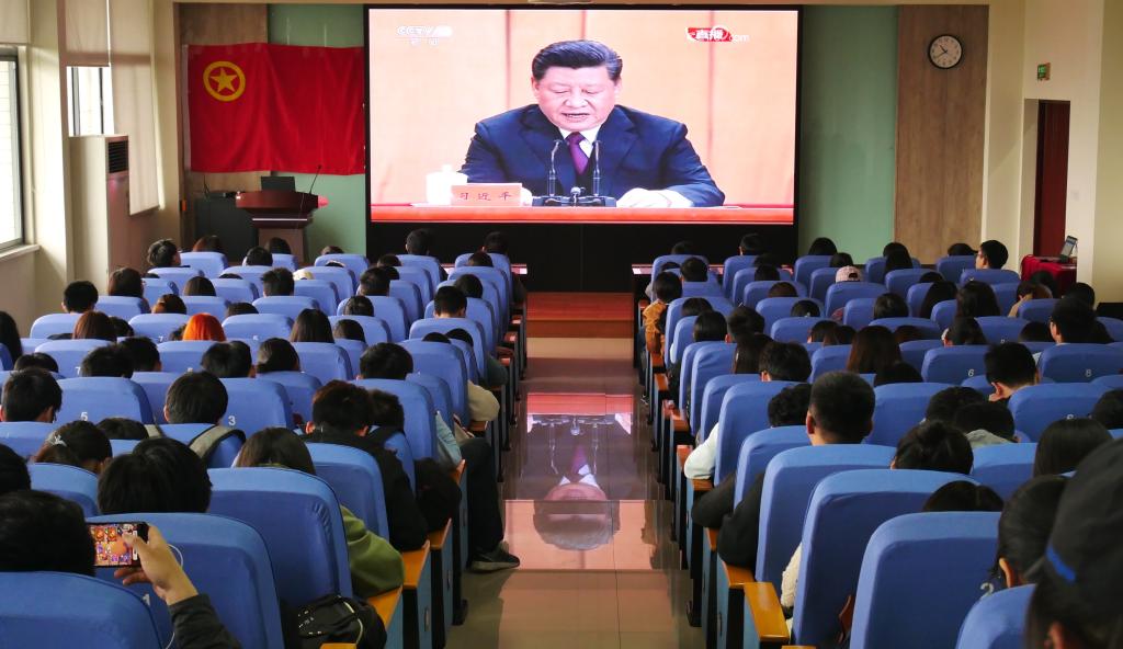 在场老师同学聆听习近平总书记的重要讲话,感悟习近平总书记对当代青年人提出的各项要求,深受启发,并分享了自己学习体会。