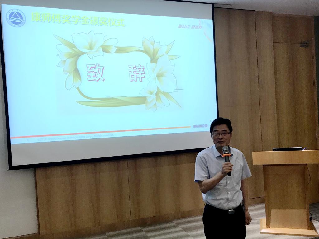 康师傅控股有限公司罗之纲副总首先致欢迎辞,对我院师生的到访表示欢迎,对获奖学生表示祝贺,并向大家介绍了康师傅控股有限公司的发展历程、发展现状以及发展前景,同时期待更多的优秀学子毕业后加入康师傅。张文副书记在致辞中,对康师傅控股有限公司在我校设立奖助学金表示衷心感谢。他希望双方能进一步深化校企合作,实现互惠共赢,同时勉励获奖学子:一是胸怀天下做学问,为食品工业强国梦、中国梦贡献自己的智慧与力量;二是脚踏实地增才干,秉承“江南食品人,敢为天下先”食品精神,积极进取,拼搏奋斗,充分利用学校企业资源增长自己才能;三是饮水思源知感恩,常怀感恩之心,传承发扬大爱精神。苏哲明副总监在讲话中表示希望通过设立奖助学金为国家培育更好的人才,共同为食品工业做出更大的贡献,同时期待校企双方有更进一步的合作。随后,康师傅控股有限公司领导和学校老师分别为获得“康师傅食品科学奖、康师傅助学金”的同学颁奖。