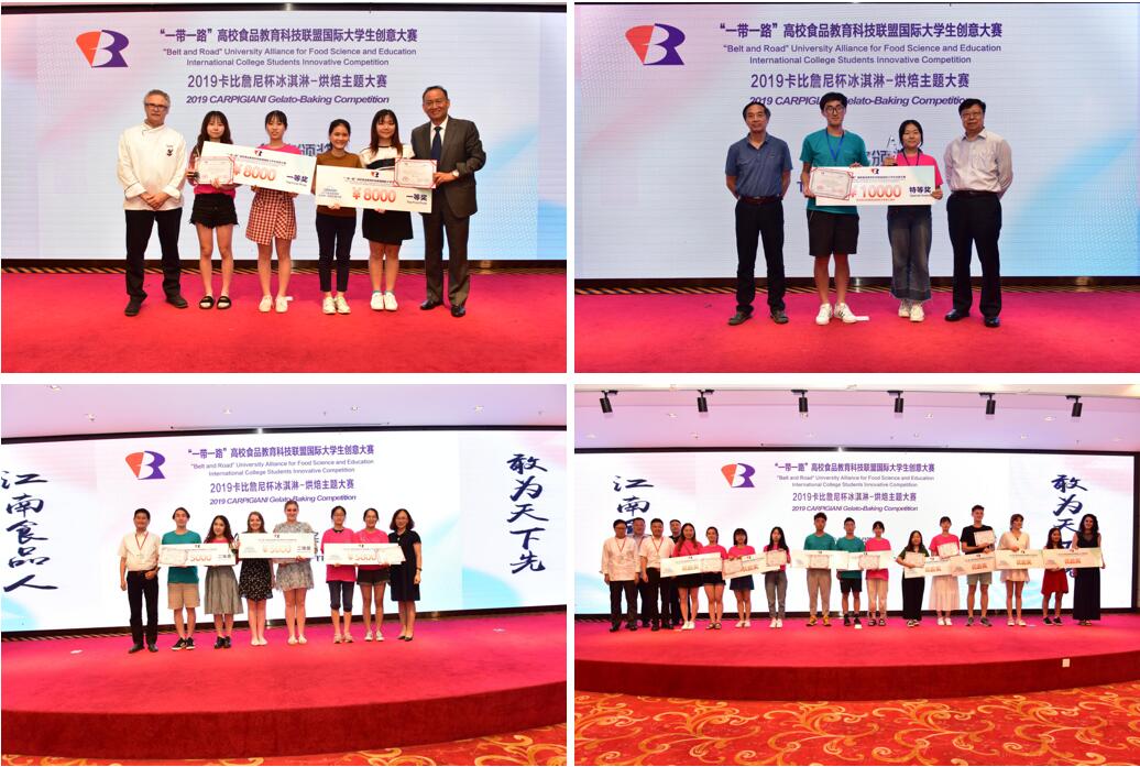 7月14日18:30,“一带一路”国际食品教育科技联盟国际大学生创意大赛—2019年卡比詹尼杯冰淇淋—烘焙主题赛颁奖典礼在长广溪宾馆太湖厅隆重举行。教育部高等学校食品科学与工程类专业教学指导委员会主任金征宇、中国焙烤食品糖制品工业协会理事长朱念琳、意大利冰淇淋协会主席Giancarlo Timballo、伟德国际victor1946原副校长王武、1946伟德国际源自英国党委书记向琪、英国雷丁大学教授Keshavan Niranjan、卡比詹尼中国区总经理许立宁、意大利卡比詹尼冰淇淋大学中国区负责人陈博知、上海市现代食品职业技能培训中心董事长史见孟、嘉吉投资(中国)有限公司烘焙油技术服务总监程钢、北京百吉乐商贸有限公司创始人路超磊、上海焙匠企业管理咨询公司总经理苏焜、烘焙资深讲师潘佳忆等出席本次颁奖典礼,颁奖典礼由1946伟德国际源自英国党委副书记、副院长张文主持,来自国内外32所高校的近120名师生参加本次活动。