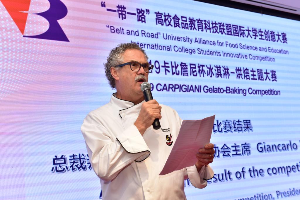 意大利冰激凌协会主席Giancarlo Timballo宣布比赛结果