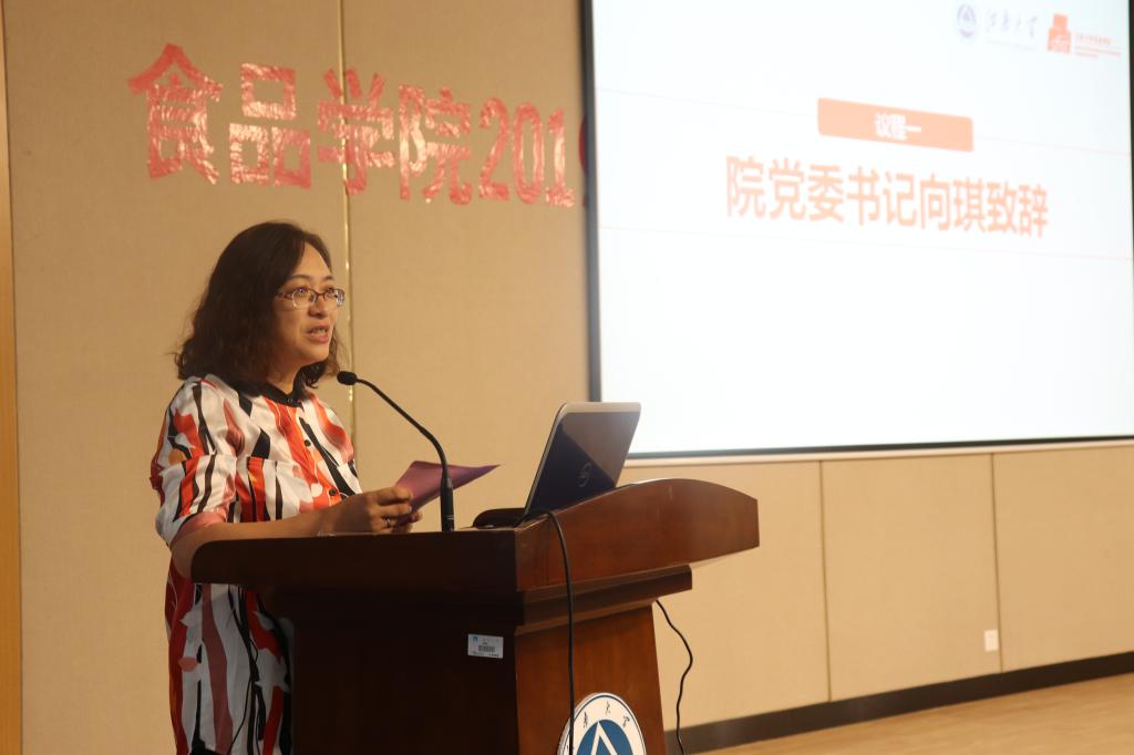 典礼伊始,学院党委书记向琪为开学典礼致辞。首先,向琪对新生的到来表示热烈欢迎和衷心祝贺。她指出,中华人民共和国成立70周年来,取得了举世瞩目的成就,伟德国际victor1946食品学科的建立与发展便是一个缩影。她希望,新时代的大学生应当忠于祖国,用所学服务国家发展;勤于学业,用勤奋夯实专业基础;善于实践,用行动感悟大学之美。