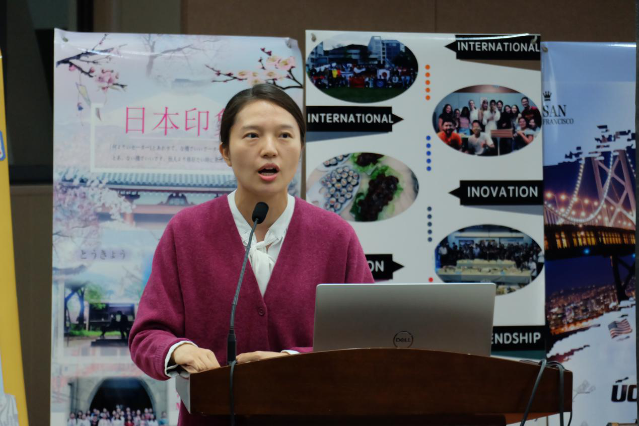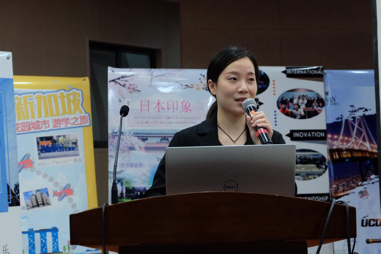 随后,秦洁老师从国家层面上阐述了江南学子积极参与国际交流的重要意义。她指出,中国大学生应当积极投身国际竞争,在更大的舞台上发出中国声音,讲述中国故事。随后介绍了学校的海外交流项目。