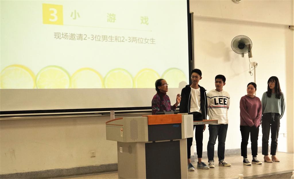 在讲座开始前,沈力晔医生首先为同学们播放了一段生动有趣的性教育视频,引发同学们的讨论,讲座现场气氛也随之活跃起来。沈医生邀请几位同学走上讲台分享自己关于大学生恋爱的观点。在了解到同学们内心关于恋爱的看法后,沈医生向同学们介绍了人生的不同阶段以及青春期的心理变化,使同学们对当前所处的成长时期有了进一步的了解。最后,沈医生重点讲述了性人际交往与安全,使同学们了解了更多的性知识,也懂得了保护自己的方法。最后,她还邀请同学们上台做游戏,通过游戏环节的推进,促进在场同学们更好地理解普通人际沟通技巧,使讲座在愉快的氛围中结束。