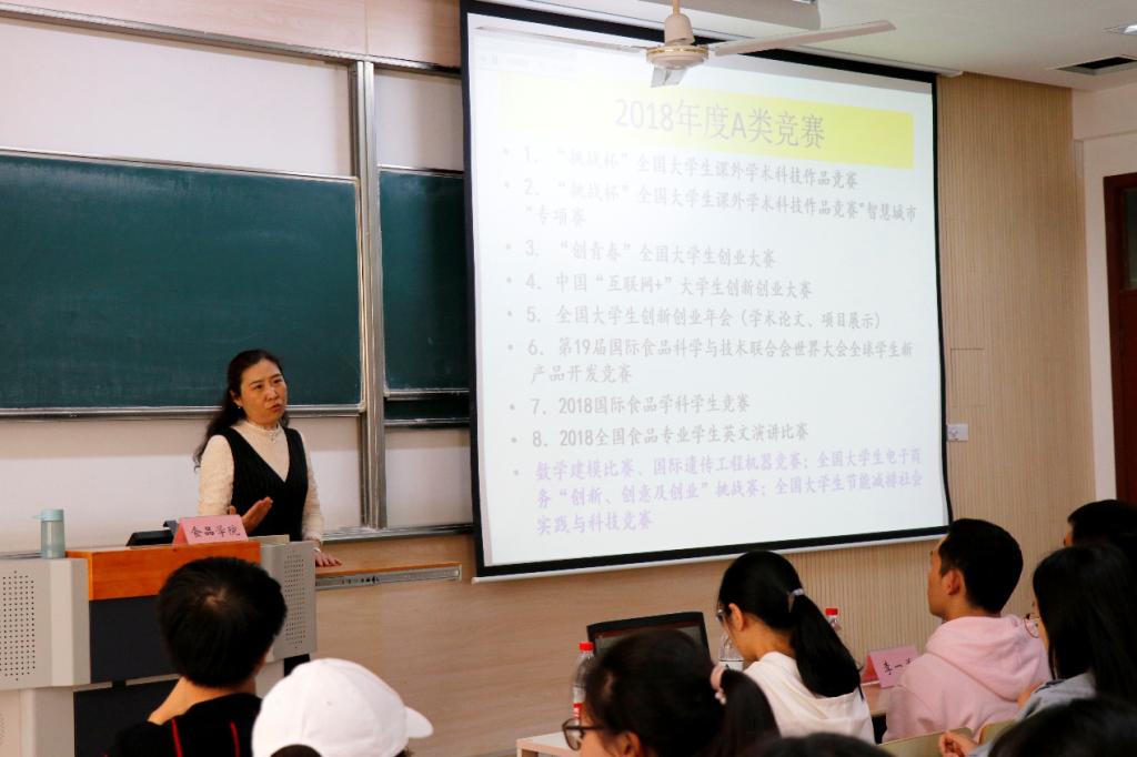 随后,“Gourmets factory”团队的四位研究生同学以参赛者的角度向大家介绍参与科创竞赛的整个流程。从团队建设到策划书准备,从前期实验到后期现场答辩,他们用生动活泼的语言向同学们分享整个参赛过程中可能遇到的问题和相应的解决方法。现场气氛活跃,同学们听得十分投入。