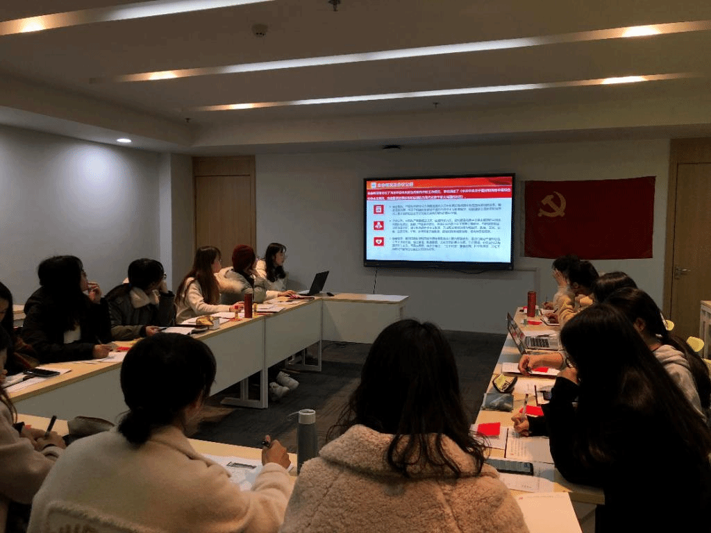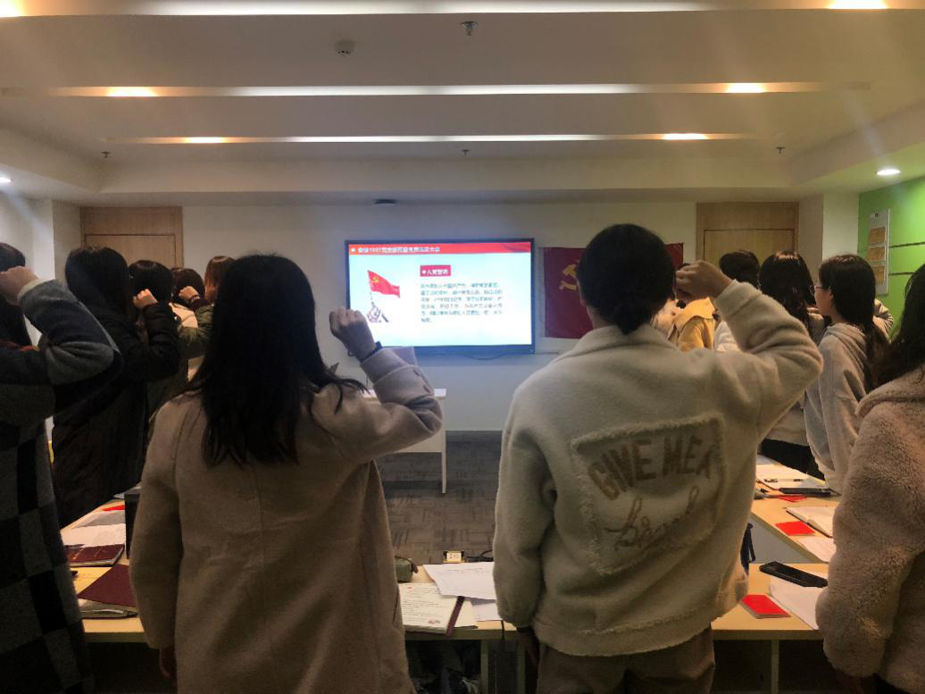 在预备党员转正环节中,许艺馨同志代表支委会宣读转正预备党员名单,黄其程、李艳敏、宋心玉、张锦雯四位同志宣读了转正申请书,入党介绍人向大会汇报对转正预备党员的综合考察意见;接下来,由参会党员发表意见,并进行无记名投票表决,陆林同志代表支委会汇报表决结果和宣读大会决议;最后,党支书李琳老师带领全体党员和预备党员重温了入党誓词,并展开了“重忆入党经历、重问入党初心”的交流,4位入党积极分子也参与其中,从分享中增进了各位同志之间的了解,也促进了彼此间的相互学习。