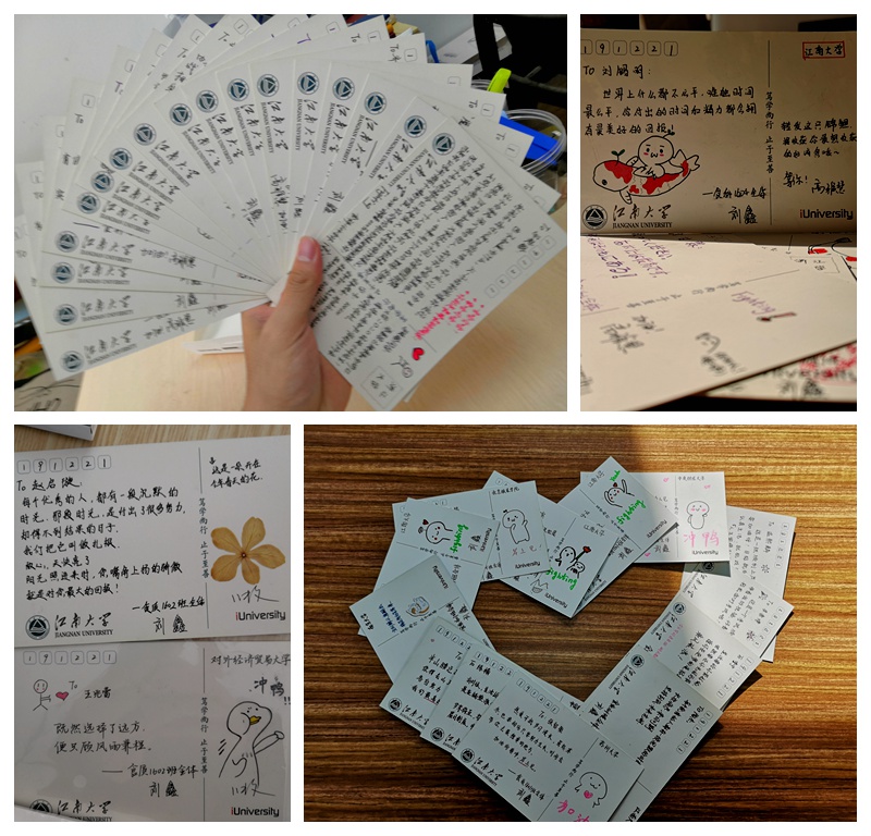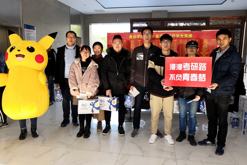 学院为每位考研学子精心准备“物质”+“精神”考研大礼包。具体来说,一是为每人送上一箱营养牛奶,让备战考研的莘莘学子在寒冷的冬天感受来自学院的关爱和温暖;二是全体保研学生为正在备考的学生写下专属明信片,张文副书记、刘鑫老师及16级班主任也为考生送上暖心祝福——“时间是会说话的,所有的努力都不会被辜负!”、“十二月,所有的美好都将如约而至,念念不忘,必有回响!”……一句句温暖又充满力量的话语为考研学子加油打气;三是志愿者同学扮演卡通人物手持“漫漫考研路,不负青春梦”、“食品学子考研必胜”为考研学子加油鼓劲,1946伟德国际源自英国一楼大厅的考研光荣榜更是为考研学生“树立考研榜样”和“赋予拼搏力量”。