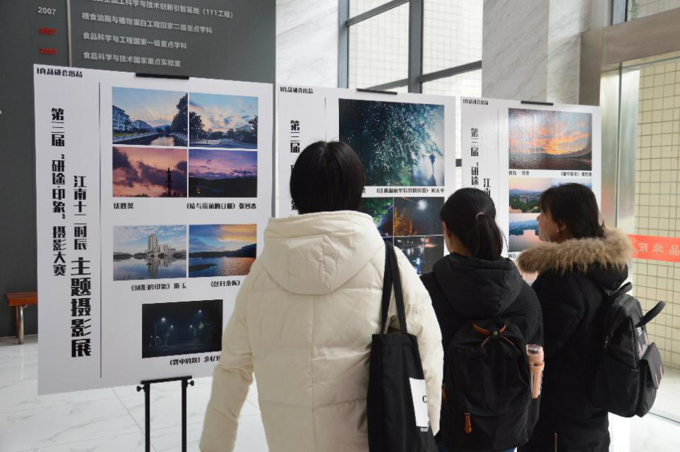 本次摄影大赛获奖作品在食品楼、协同创新中心等地进行展出,师生们纷纷驻足观看。本次活动的举办,丰富了同学们的校园文化生活,为爱好摄影的同学们提供了一个展示的平台,促使更多的人去感受不一样江南的韵味,定格美好瞬间,寻找自己眼中的江南印象!