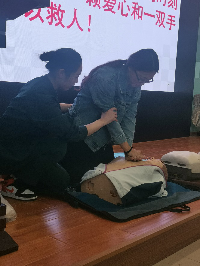 在示范过程中,老师们和同学们纷纷围拢上前,仔细观看并聆听护师们的示范操作及注意要点,并大胆提问。护师们也对同学们的问题进行了详细讲解。随后,同学们积极上台尝试,在护师们的指导下练习心肺复苏与气道异物急救实践操作。在危机面前,每提前一秒进行急救,患者就多了一丝生的机会,本次急救知识讲座结束后,师生们纷纷表示受益颇多。希望通过这次讲座,师生们能够更加珍惜生命,面对意外镇定自若并在他人遇险时能挺身而出,尽自己的绵薄之力,为共创平安校园奠定基础!