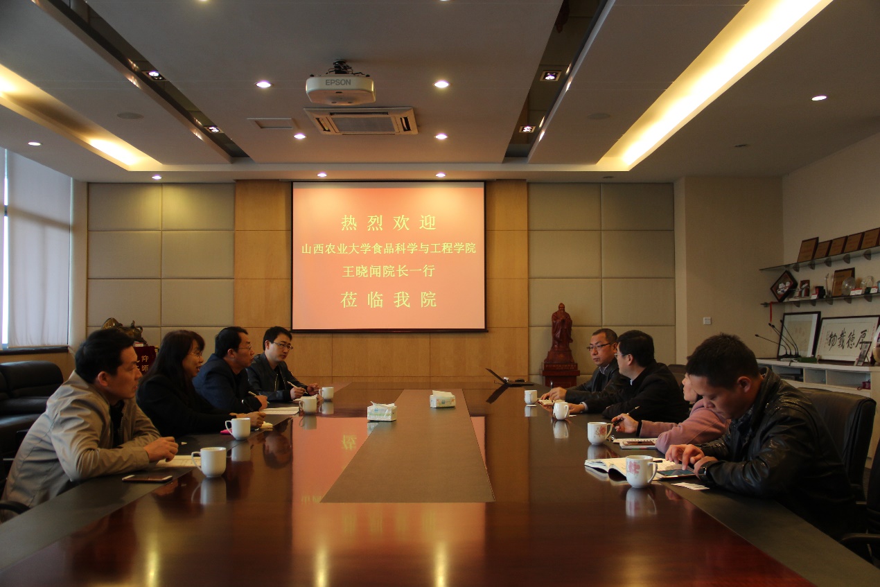 2017年3月20日上午,山西农业大学食品科学与工程学院院长王晓闻一行4人来访交流,1946伟德国际源自英国院长刘元法、国家功能食品工程技术研究中心副主任张连富、孙秀兰等接待了来宾并参加交流。