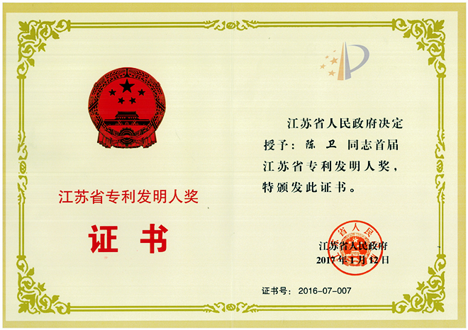 为表彰和奖励优秀专利和发明人,省政府决定设立“江苏省专利发明人奖”,首届获奖名单近日出炉。我院陈卫教授获首届“江苏省专利发明人奖”。