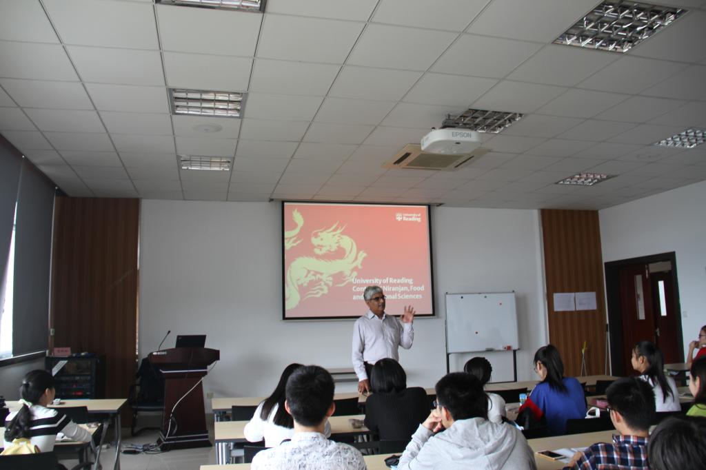 10月18日,英国雷丁大学教授Keshavan Niranjan博士来访我校,为1946伟德国际源自英国国际班的同学就留学生活和相关事宜发表演讲。Keshavan Niranjan博士是英国雷丁大学食品营养系教授,剑桥大学化学博士,《Journal of Food Engineering》副主编。研究领域包括膨化食品、食品的高压处理、新鲜蔬菜水果的保鲜包装等。
