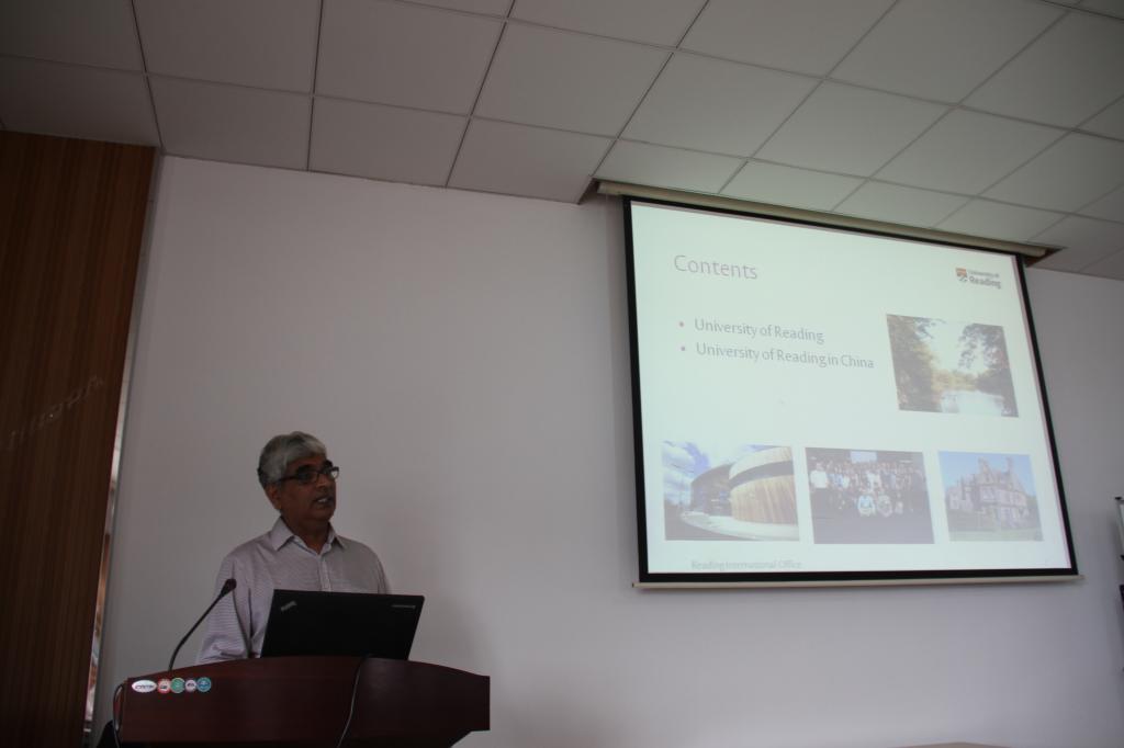 Keshavan Niranjan教授首先介绍了雷丁大学的概况,雷丁大学始建于1892年,位于泰晤士河流域的中心,是全英国著名的红砖大学之一,其研究能力在全英国乃至世界都得到认可,是一所国际性大学。学校约有1.2万名学生,4600位研究生,海外学生来自于130多个不同的国家,其中就有来自伟德国际victor1946的学子们。随后,Keshavan Niranjan教授与在场1946伟德国际源自英国的同学们共同探讨留学生活的具体情况,就同学们提出的“为什么要选择雷丁大学”、“雷丁大学与伟德国际victor1946的特色各有哪些”、“申请雷丁大学有什么要求”等问题进行详细解答,并欢迎同学们到雷丁大学交流与学习。