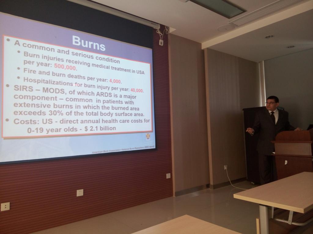 Madhav Bhatia教授的学术交流讲座主要从三方面展开。首先,Madhav Bhatia教授介绍了主要的炎症性疾病及其造成的社会经济影响。其次,Madhav Bhatia教授介绍了Hydrogen sulfide与Substance P两种新型炎症介质在急性胰腺炎、败血症、烧伤、炎症细胞迁移过程起的作用及其机制。然后,Madhav Bhatia教授从临床出发,介绍了两种新型炎症介质在临床上的应用,阐明了相关研究的重要社会意义。讲座尾声,Madhav Bhatia教授与现场的同学们进行了交流与互动。对于同学们提出有关问题,他结合自身的科研阅历耐心细致的解答,同学们对Madhav Bhatia教授严谨而耐心细致的解答报以热烈的掌声。