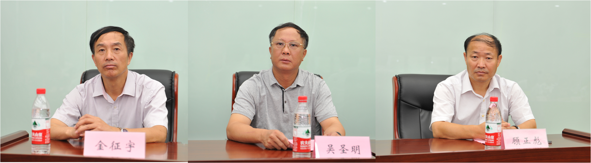 广东省食品药品监管局食安办副主任、副局长吴圣明(中);伟德国际victor1946副校长顾正彪(右)、金征宇(左)