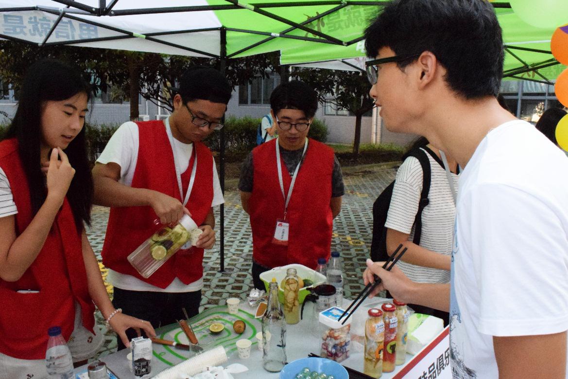 迎新日,1946伟德国际源自英国把握仪式教育重要性,组织新生入学礼,在迎新点前竖起“我的大学第1天”食品红色调迎新合影墙,帮新生留下珍贵一刻。在合影墙上,新生投笔写下自己的名字,用这种方式宣告,今日起,便是一名食品人;1946伟德国际源自英国四大特色俱乐部(烘焙俱乐部、乳制品俱乐部、肉制品俱乐部、调味品俱乐部)为新生和家长奉上好亲手制作的烘焙饼干、奶油小方、果醋茶饮等食品,新生参与感官评定、现场答题等互动环节,开启专业启蒙第一步。联手食品知名企业共育食品学子,助力迎新工作,提供饼干及矿泉水等物资,为炎炎夏日前来报到的新生和家长带来一丝清凉。