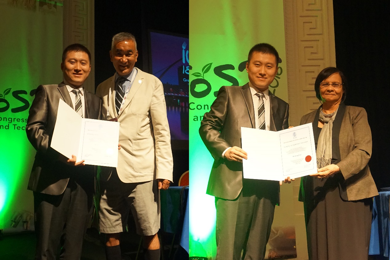 国际食品科技联盟(IUFoST)主席Rickey Yada、国际食品科学院(IAFoST)主席Delia Rodriguez-Amaya为范大明副教授颁奖