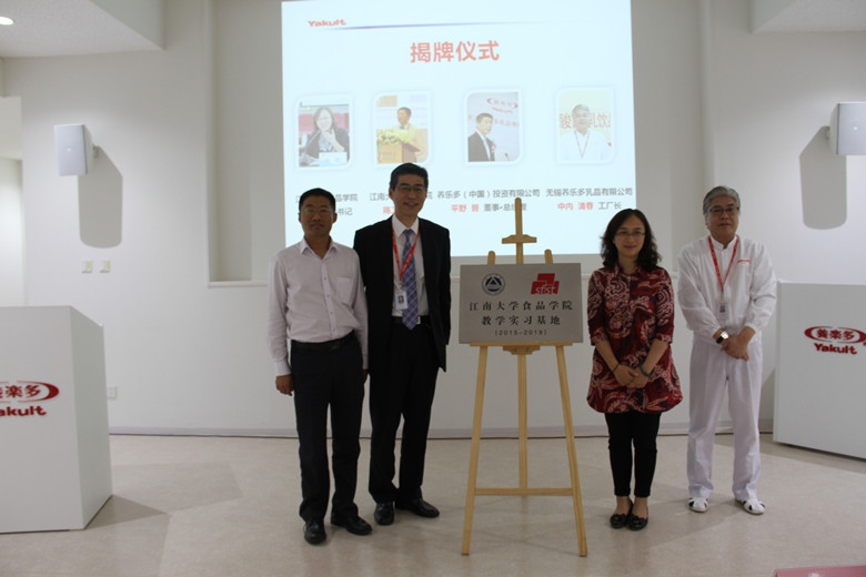 6月15日下午,养乐多(中国)投资有限公司与伟德国际victor1946“校外共建基地”的揭牌仪式在无锡养乐多乳品有限公司工厂举行。1946伟德国际源自英国院长陈卫、党委书记向琪、党委副书记王维,无锡养乐多乳品有限公司董事总经理平野晋、工厂长中内清春,以及1946伟德国际源自英国教师、学生代表一行参加了仪式。