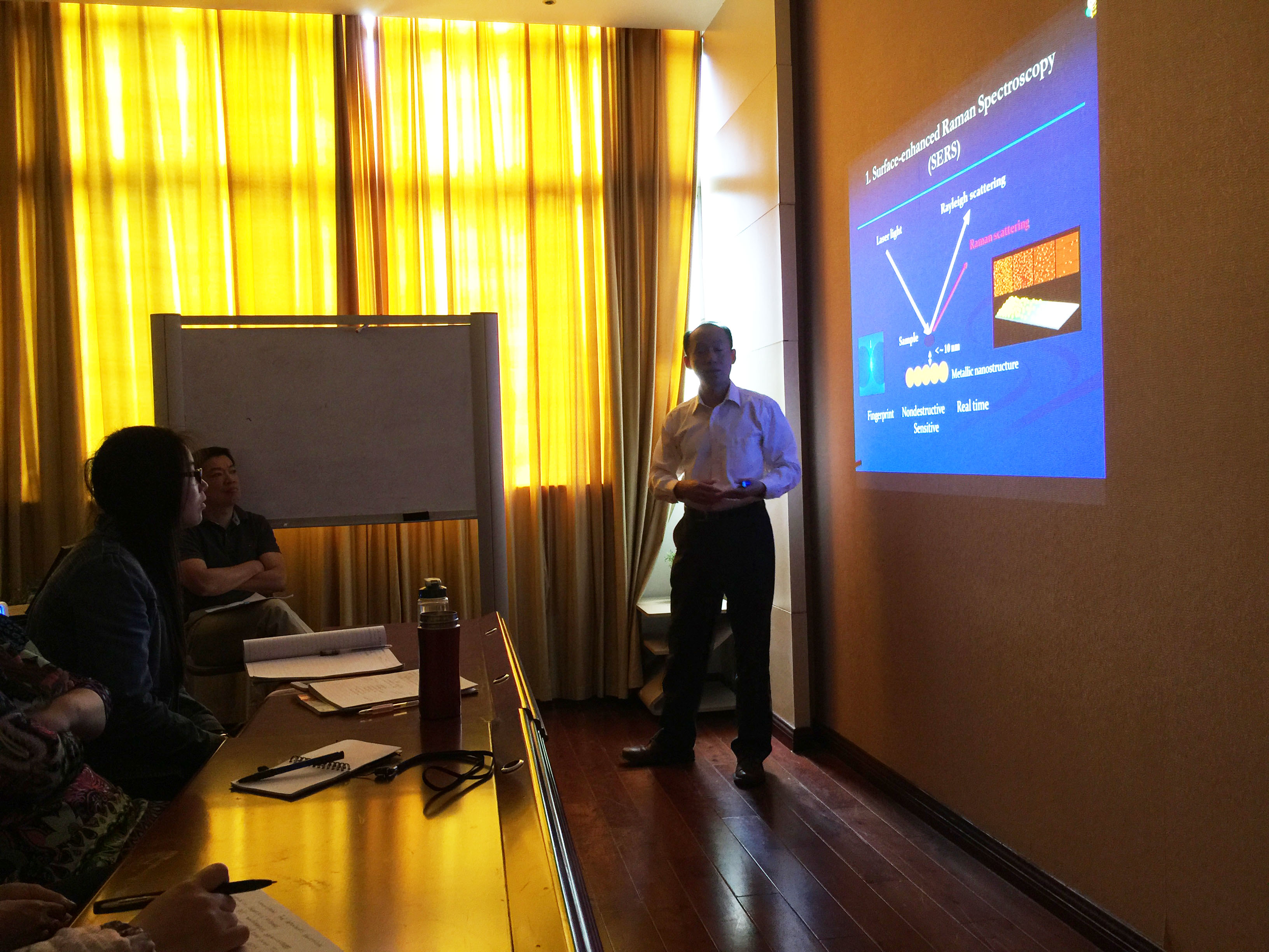 林孟师教授在交流期间,为1946伟德国际源自英国相关领域的师生做了题为“表面增强拉曼在食品检测中的应用”的学术报告,并与现场的同学进行了亲切交流与互动,鼓励同学们要善于发现并思考问题,同时耐心细致地回答了同学们提出的问题,结合自身的科研阅历解答了同学们现阶段所遇到的困惑,让大家受益匪浅。