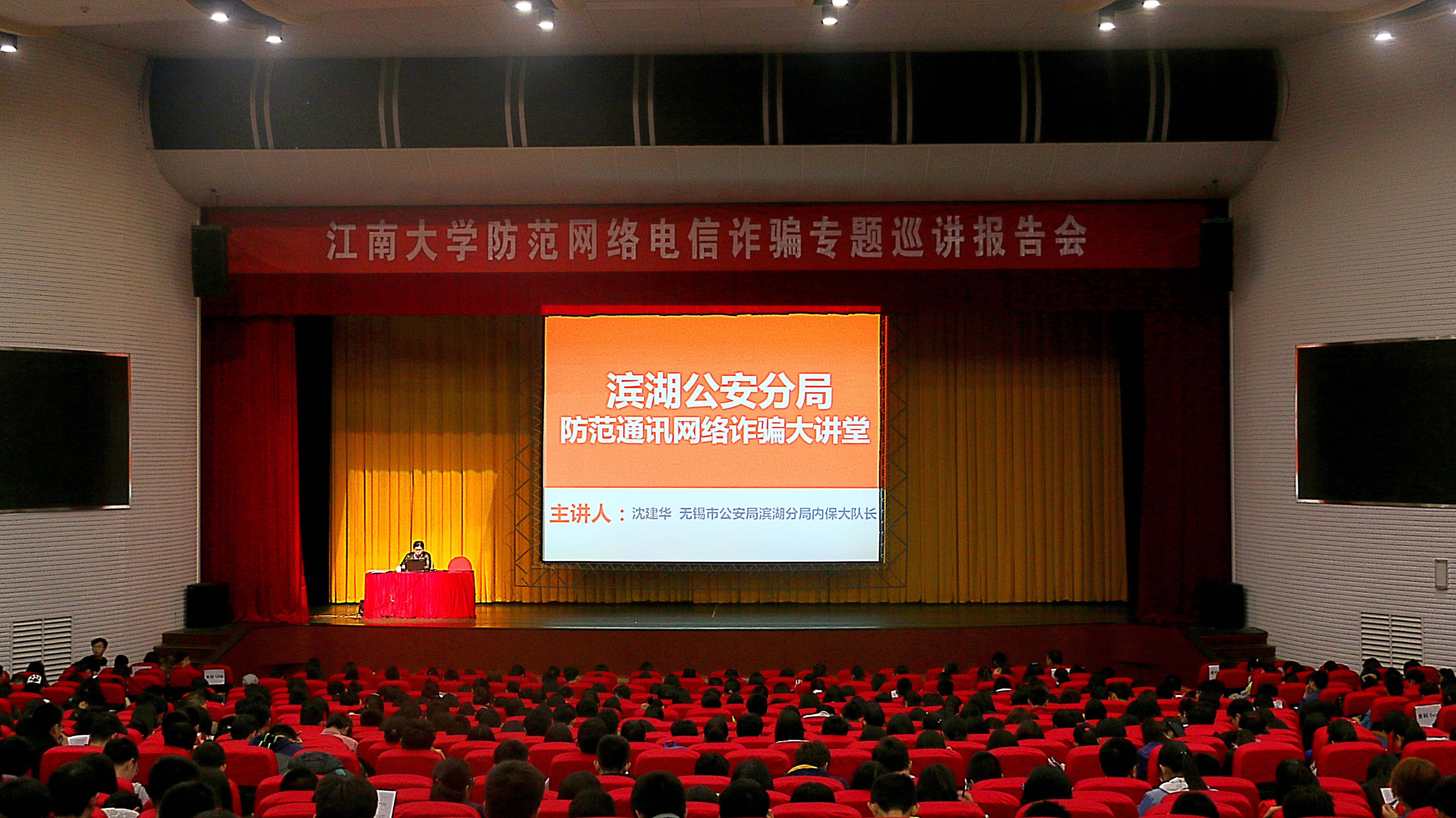 会上,沈建华警官简要介绍了滨湖区网络电信诈骗情况,通报了近几年我校网络诈骗案件总体情况,用数据让同学们更加直观地认识诈骗事件的多发性;沈警官重点介绍几种常见的网络电信诈骗形式,并列举了发生在同学们身边、有代表性的案例,警示在场同学一定要严防死守,保障自身财产安全。他强调网络电信诈骗案件时有发生的根本原因是受害人存在侥幸心理,遏制打击网络电信诈骗的关键,是同学们自身的重视和防范,希望大学生树立正确的消费观,做到提防意识入脑入心,警钟长鸣。
