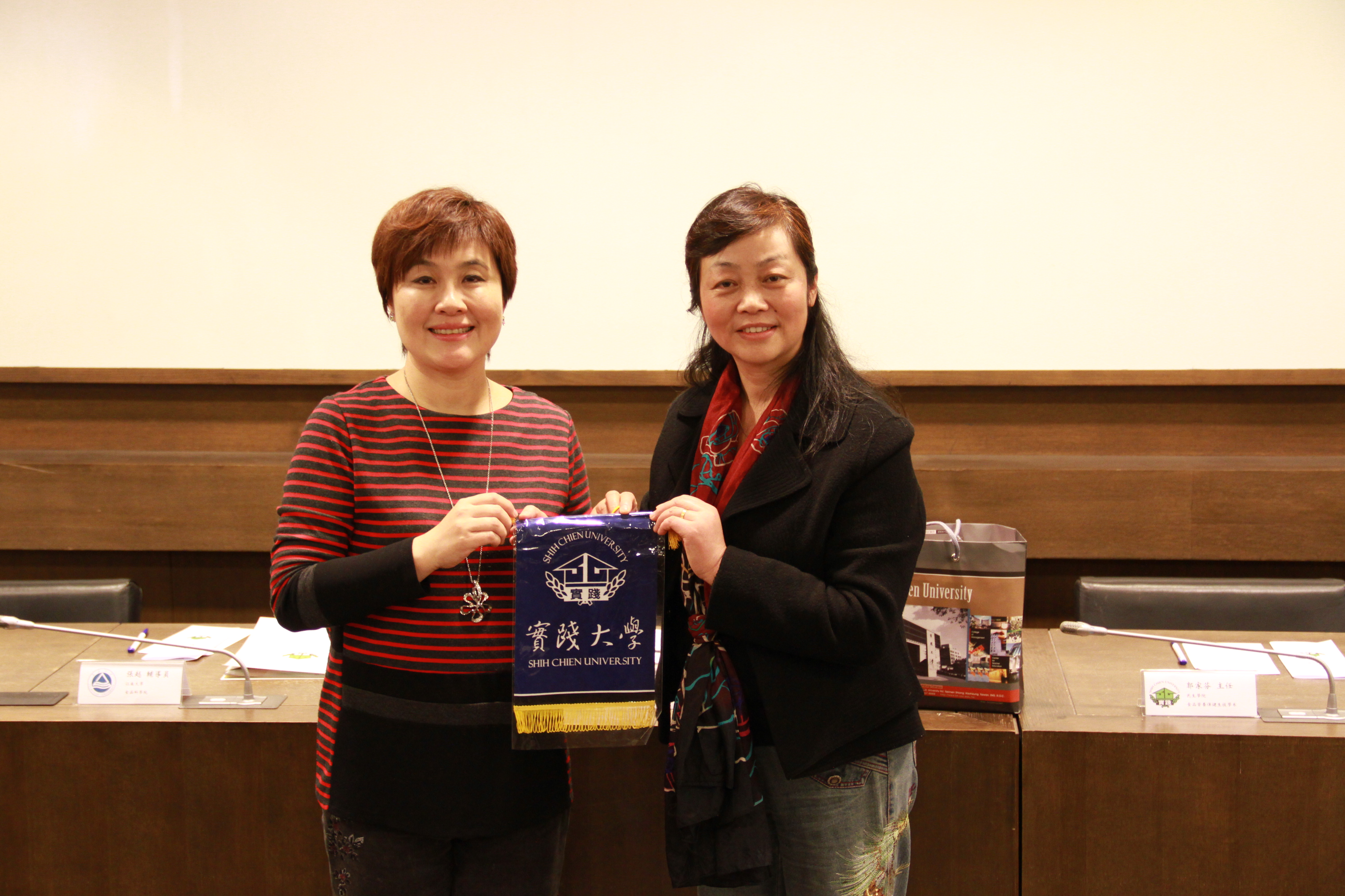 在台湾大学,食品科技研究所郑光成教授等一行师生热情接待了游学团,在台大研究所师生的带领下参观了占地辽阔、生态优美的台大校园。在参观校园后,台湾大学食品科技研究所所长接待并安排了一场两岸师生的交流,双方在实验室安全、本科生教育以及高级人才培养等方面进行讨论,交换了彼此的看法和建议,会议厅内气氛活泼而热烈。临别前,研究所学生们送上了精致的礼物,以表情谊。