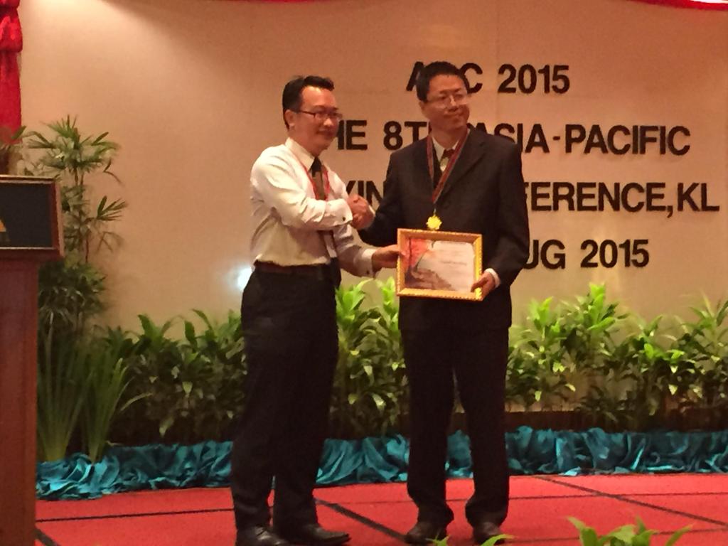 “Arun S. Mujumdar Medal”奖颁奖合影(右一:张慜教授,颁奖者:第八届亚太干燥会议主席ChungLim Law教授)