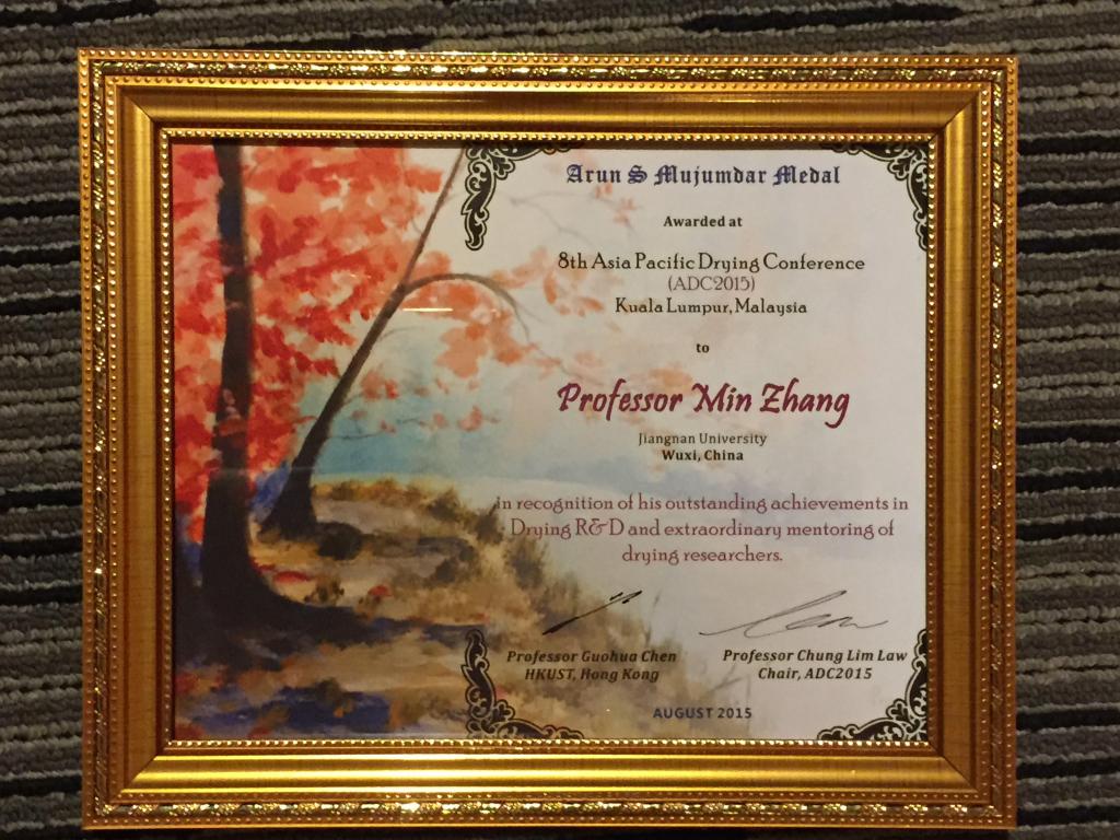 近日,我校1946伟德国际源自英国张慜教授在刚结束的在马来西亚召开的第八届亚太干燥会议(Asia-Pacific Drying Conference,ADS2015)上获得全球干燥界最重要的奖项——“Arun S. Mujumdar Medal”大奖,他是获此殊荣的全球第九人。