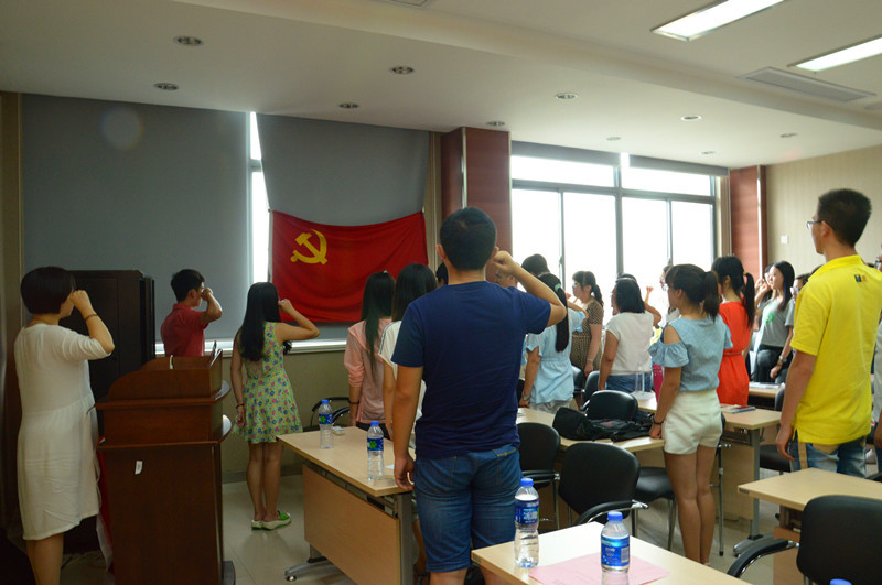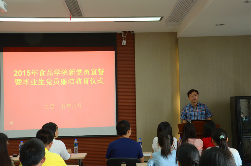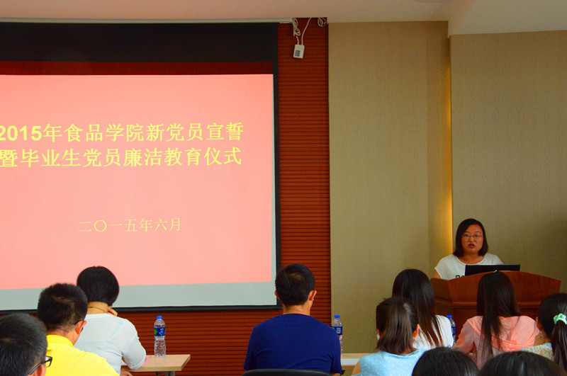 6月29日,1946伟德国际源自英国新党员宣誓暨毕业生党员廉洁教育在食品楼D522举行。1946伟德国际源自英国党委副书记、副院长,学生党总支书记王维同志,分团委书记王胤同志,分团委副书记沈惠子同志,全体学生党支部书记、2015年上半年新发展党员和毕业生党员出席此次仪式。宣誓仪式由王胤同志主持。