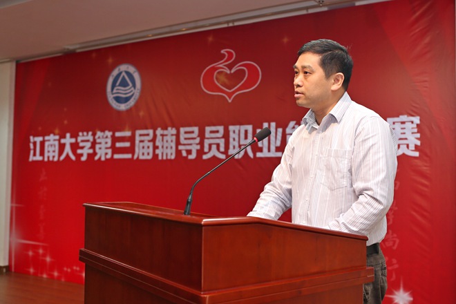 校长助理、学生工作部部长崔宝同为大赛致辞。他指出职业能力大赛是辅导员工作能力研判和自我提升的重要平台,希望辅导员以大赛为契机,认真践行《高等学校辅导员职业能力标准(暂行)》,明确自身定位与职责,增强工作专业性,将个人理想与价值追求融入到人才培养事业中。
