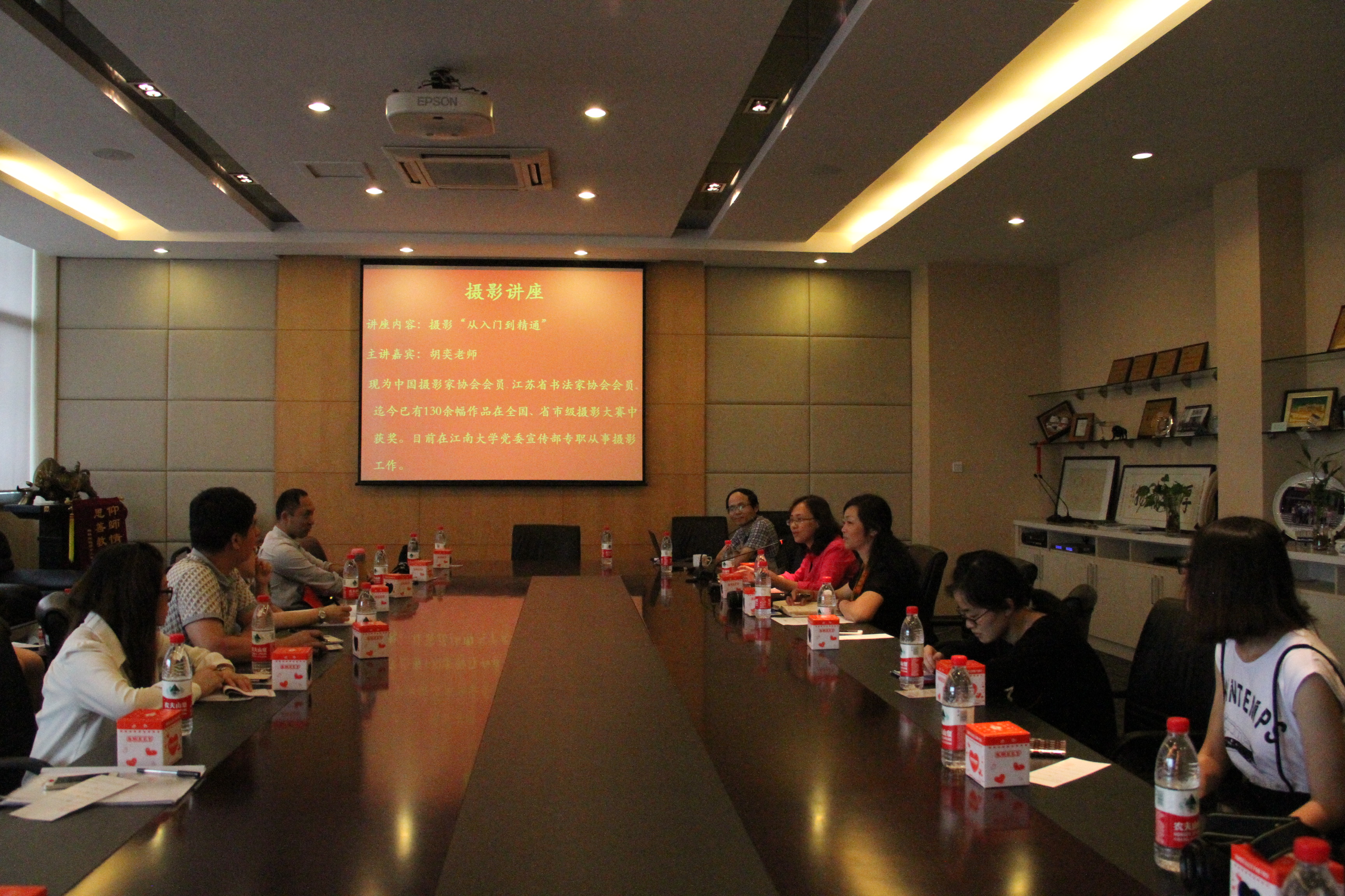 为提升学院宣传摄影工作的质量,为摄影爱好者们提供宝贵的学习和交流机会, 2015年5月28日下午,1946伟德国际源自英国分工会邀请了中国摄影家协会会员、江苏省书法家协会会员,现就任于伟德国际victor1946党委宣传部的胡奕老师在1946伟德国际源自英国D910会议室为40多名慕名而来的师生作了摄影讲座。讲座由1946伟德国际源自英国党委书记向琪主持。