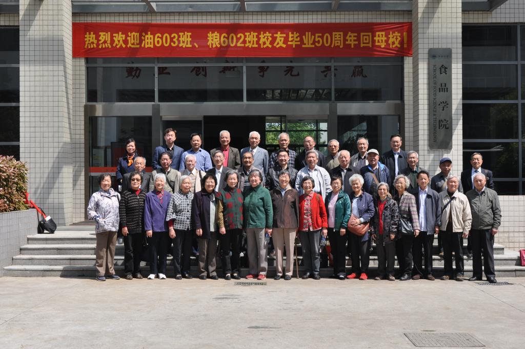 4月23日,无锡轻工业学院油603、粮602两个班30多位老校友在毕业50周年之际重返母校,相聚在蠡湖新校区。树木葱茏,百花盛开的蠡湖校区让老校友们赞叹不已,校史馆、酒科技馆丰富的馆藏,国家重点实验室先进的设备也让大家感慨万千。