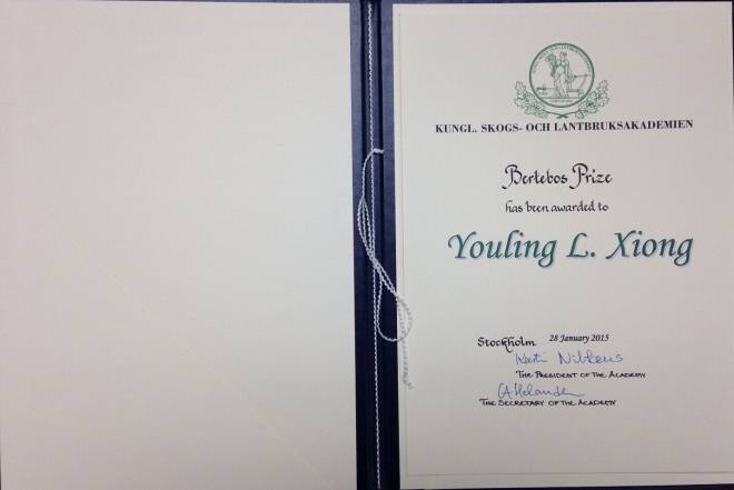 瑞典皇家农林科学院Bertebos奖素有“农业诺贝尔奖”之称,从全球范围农林科学领域具有非凡和重要贡献的学者内提名挑选,每两年颁发一次。今年,该奖候选人提名要求必须在食品科技、毒理学、或药学领域具有突出贡献,无论是技术还是健康/营养价值方面都有领先的研究。与熊教授同获该奖的还有比利时鲁汶大学Jan Delcour教授。熊教授的提名者是瑞典皇家农林科学院院士、杰出科学家Kerstin Lundström教授。